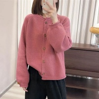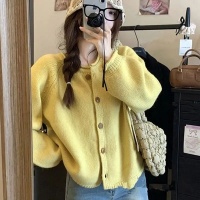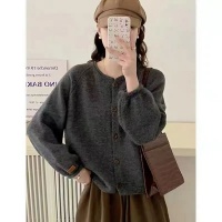 秋冬新款韓版慵懶捲邊圓領疊穿顯瘦針織外套